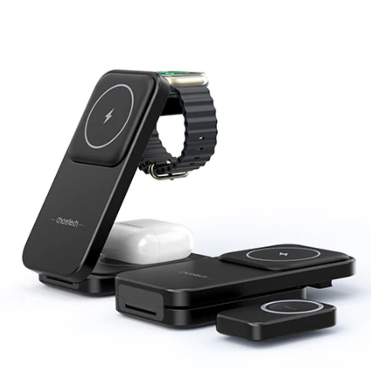 Đế sạc Choetech T611 Mag-safe 3 in 1 xếp gọn 15W dùng sạc cho điện thoại, tai nghe và Ap-ple watch (Hàng chính hãng)
