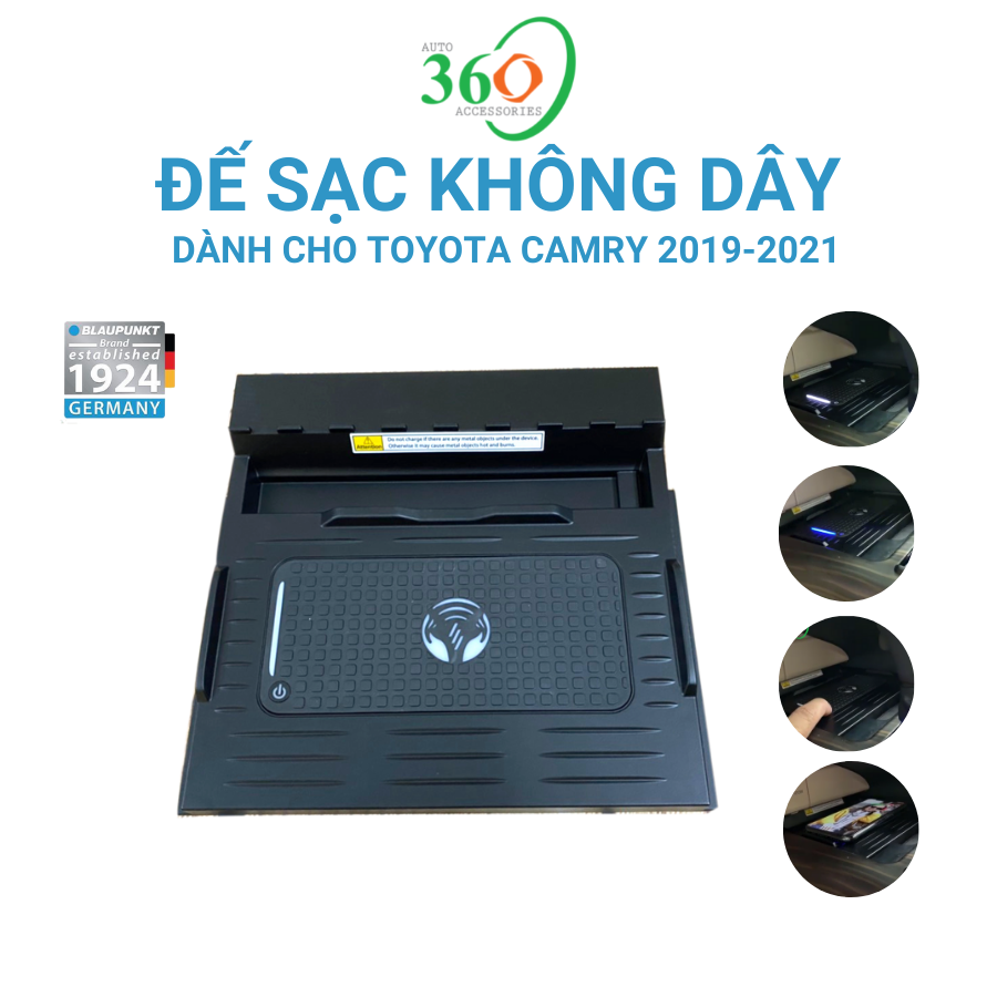 - Công suất: 10w Đế sạc không dây hay còn gọi là dock sạc không dây của hãng Blaupunkt của Đức được sản xuất bằng nhựa ABS bền, đẹp, cách điện, chịu nhiệt tốt dành riêng cho xe Toyota Camry. Đế sạc không dây được thiết kế với kích thước chuẩn của khay để đồ lặt vặt cạnh ghế lái với các đường rãnh để giữ điện thoại không bị trượt khi đi trên đường xấu. Đế sạc Blaupunkt bảo đảm được tính thẩm mỹ cao, bên cạnh hình ảnh sang trọng, nâng cao giá trị của xe giúp chủ xe thêm tự hào về loại phụ kiện thông minh này. Đế sạc không dây dễ dàng lắp đặt, người dùng cũng có thể tự lắp đặt theo hướng dẫn mà không cần có sự hỗ trợ của kỹ thuật viên. Phần dây nối ẩn ở mặt dưới của đế sạc giống như phụ kiện chính hãng theo xe. Điểm đặc biệt của dock sạc không dây là sạc nhanh, sạc không cần tháo vỏ điện thoại khi sạc. Chỉ cần nhấn nút nguồn, bạn có thể sạc nhanh điện thoại để không bị bỏ lõ bất kỳ cuộc điện thoại quan trọng nào. Ngoài ra, bạn cũng có thể trượt đế sạc vào trong để lấy đồ lặt vặt được cất trong khay để đồ cạnh ghế lái. Đế sạc không dây tương thích với nhiều loại điện thoại như: