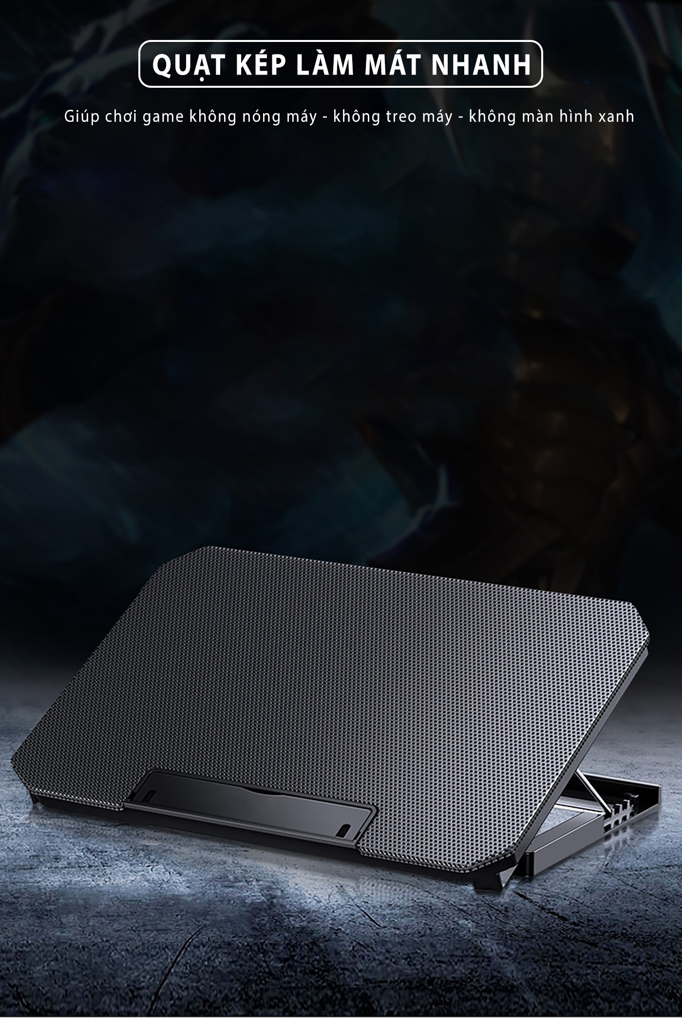 Đế tản nhiệt HXSJ H100- thiết kế đơn giản nhưng không hề đơn điệu Được trang bị 2 quạt lớn giúp làm mát nhanh chóng và cực kì hiệu quả Bề mặt được làm từ