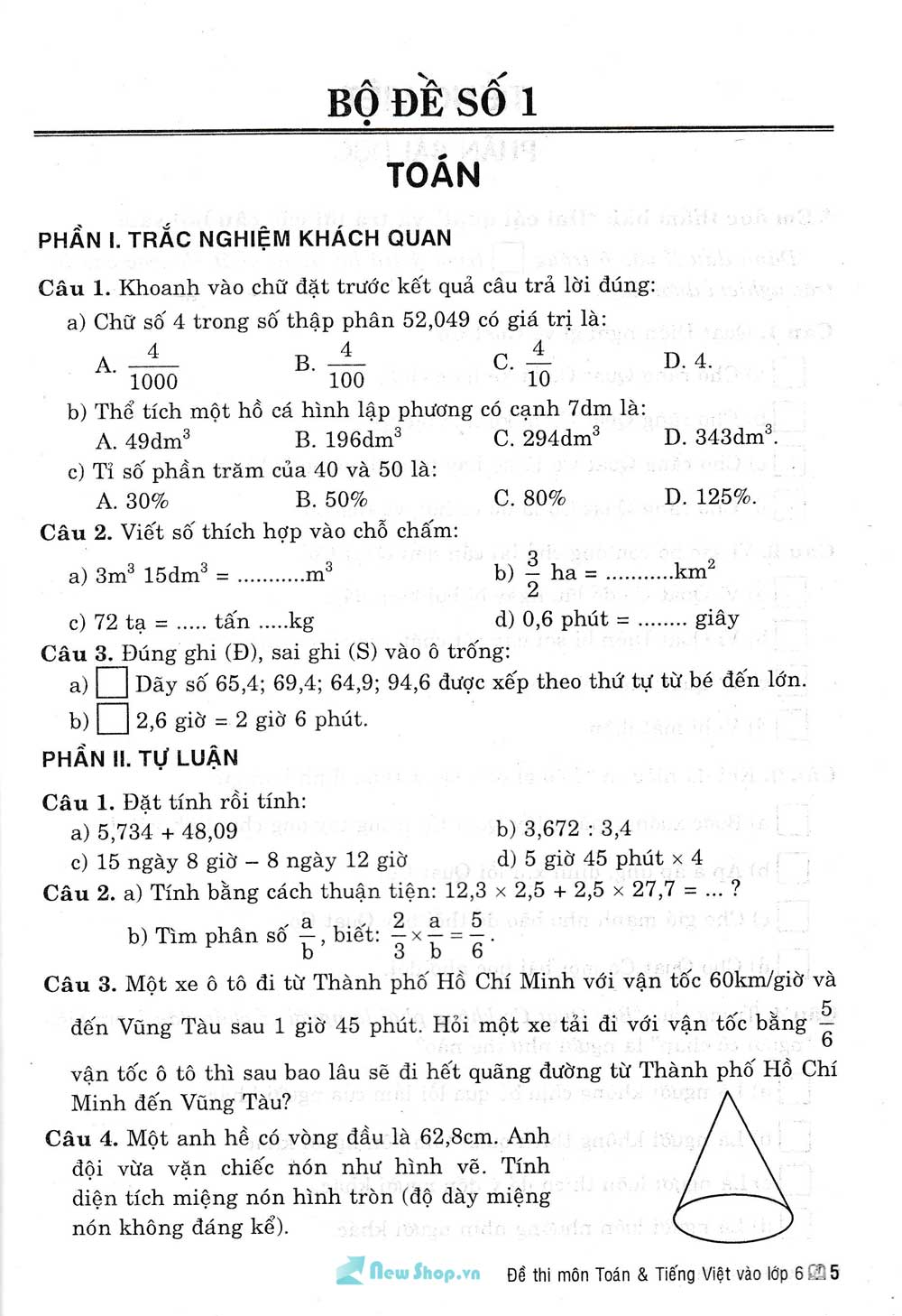 ✨Đề Thi Môn Toán Và Tiếng Việt Vào Lớp 6 - HA