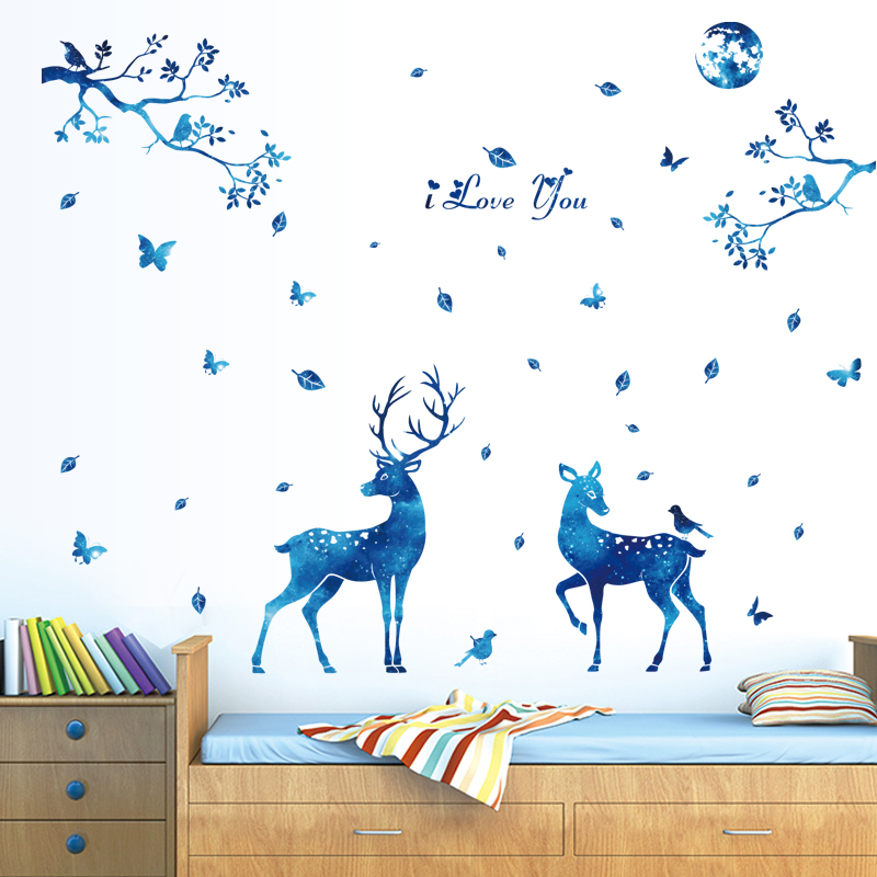 ✨Decal dán tường Mẫu Gia Đình Nai dưới ánh trăng ,có sẵn keo chỉ cần bóc dán