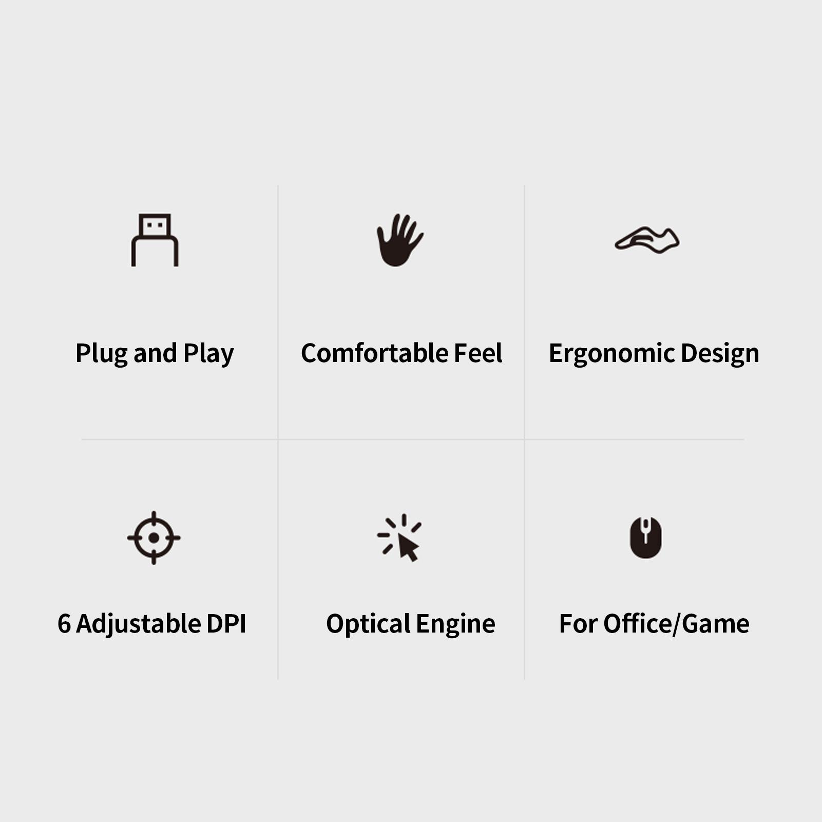 Features: 1000DPI Resolution Left, right, and wheel 1000DPI resolution mode, 360-degree unobstructed reception. Micro USB Connected Mouse with micro USB cable, plug and play, convenient and fast. 6D Rubber Anti-skid Roller The mouse wheel is