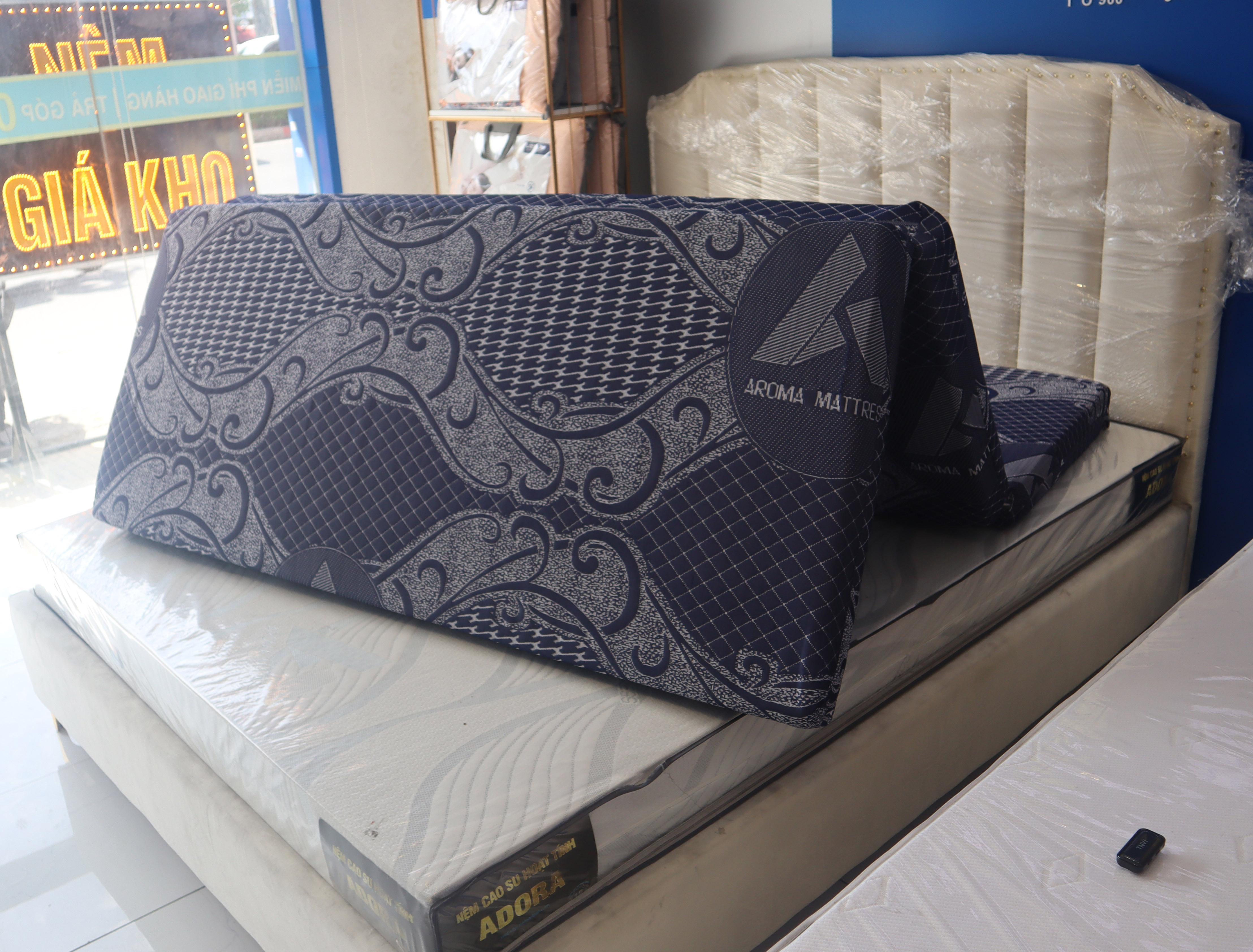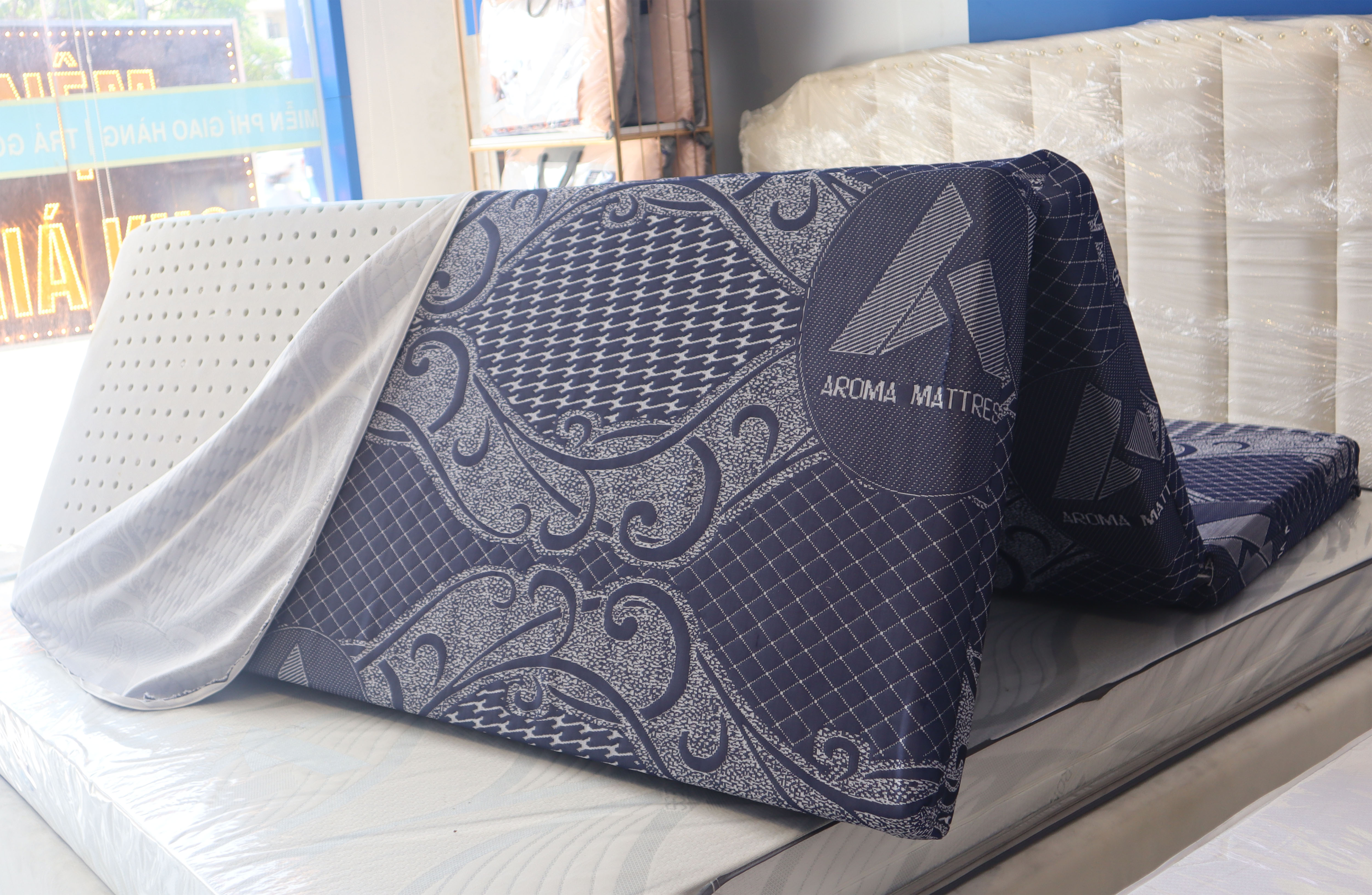 - Lớp áo đệm được làm từ vải thun 4d cao cấp co dãn thấm hút tốt, cùng các họa tiết được in nổi đem lại sự sang trọng cho tấm nệm.