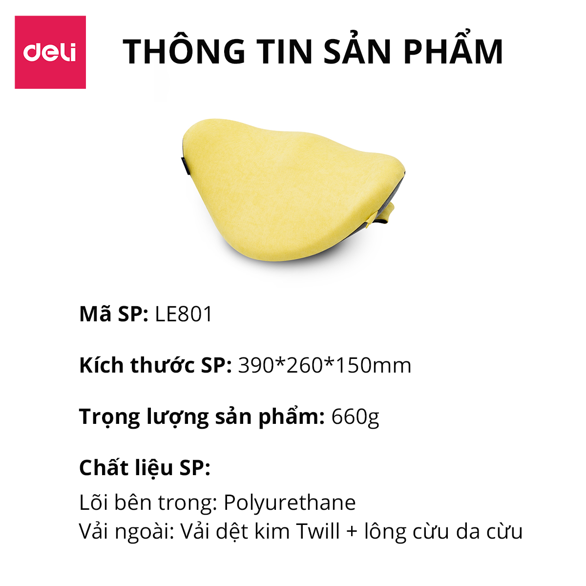 - Đệm ghế văn phòng Deli - ĐỆM NGỒI THOẢI - Đệm ghế được làm bằng chất liệu bọt xốp chất lượng cao, mang lại sự thoải mái vượt trội - GIẢM ĐAU LƯNG, ĐAU