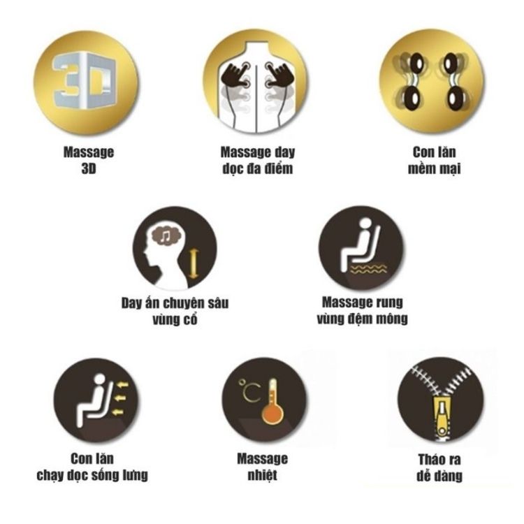 Massage nhẹ nhàng, thư giãn các vùng cơ chịu nhiều áp lực Thiết kế di động, lý tưởng để mang đi du lịch Có thể điều chỉnh tiện lợi với bảng điều khiển tích hợp