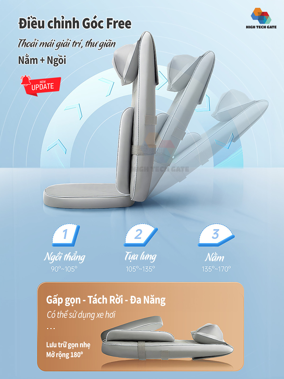 • Với thiết kế tách biệt tháo rời được gối, cùng với cấp độ xoa bóp linh hoạt 3 cấp độ, người dùng có thể lựa chọn phù hợp với từng nhu cầu cụ thể và phù hợp với chiều cao của body mình. Giúp massage đúng điểm, đúng vị trí, cảm giác sâu hơn phiên bản cũ.