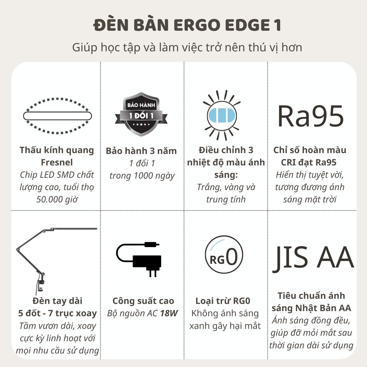 Đèn bàn bảo vệ mắt Ergo Edge 2 chống cận để học tập, làm việc,...