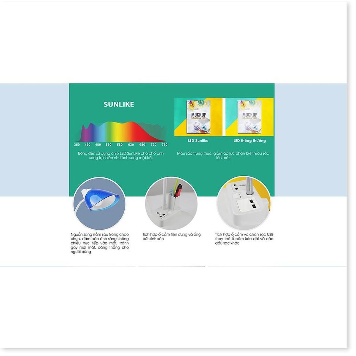 Công suất: 6W Đèn cắm điện trực tiếp, điện áp: 220V/50Hz Nhiệt độ màu: Sáng trắng ấm 5000K Độ rọi trên mặt bàn: > 600 lux Ánh sáng trung thực tương đương với ánh sáng