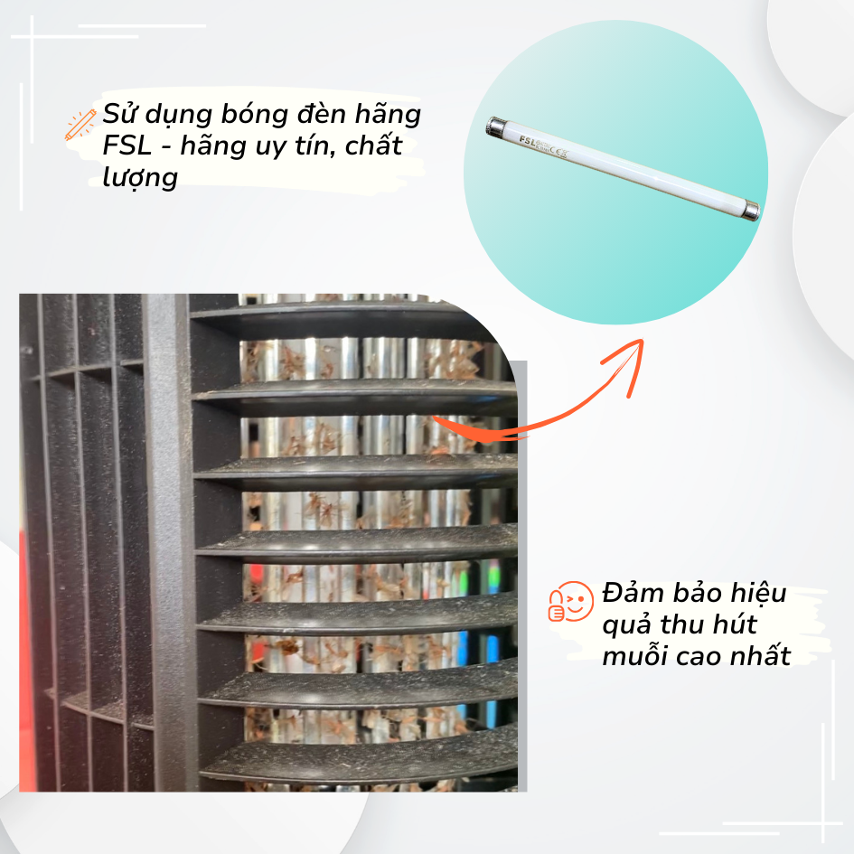 - Đèn bắt muỗi ruồi và các loại côn trùng HATACA model CN04 hiện đang dùng bóng đèn hãng FSL là 1 hãng đèn khá uy tín trong ngành sản xuất bóng đèn nên khả năng thu hút muỗi cũng như côn trùng được đảm bảo cao nhất