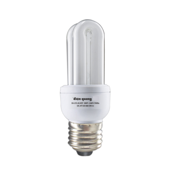 Bóng Đèn Compact Điện Quang ĐQ-CFL-2U-T4-8W-DL-E27 - Ánh Sáng Trắng đảm bảo yếu tố tiết kiệm năng lượng với giá thành cạnh tranh, tương đương với bộ đèn lon sử dụng bóng compact. Kích thước nhỏ gọn, thích hợp để thay thế cho các loại đèn tròn. Hiệu suất phát sáng cao nhờ sử dụng bột huỳnh quang 3 màu và ballast điện tử. Đèn 3U cho ánh sáng vừa phải, thích hợp cho nội thất trong nhà, dân dụng, công nghiệp. Tiết kiệm 80% điện năng tiêu thụ. Nhiệt độ màu 6500K cho ánh sáng rõ.