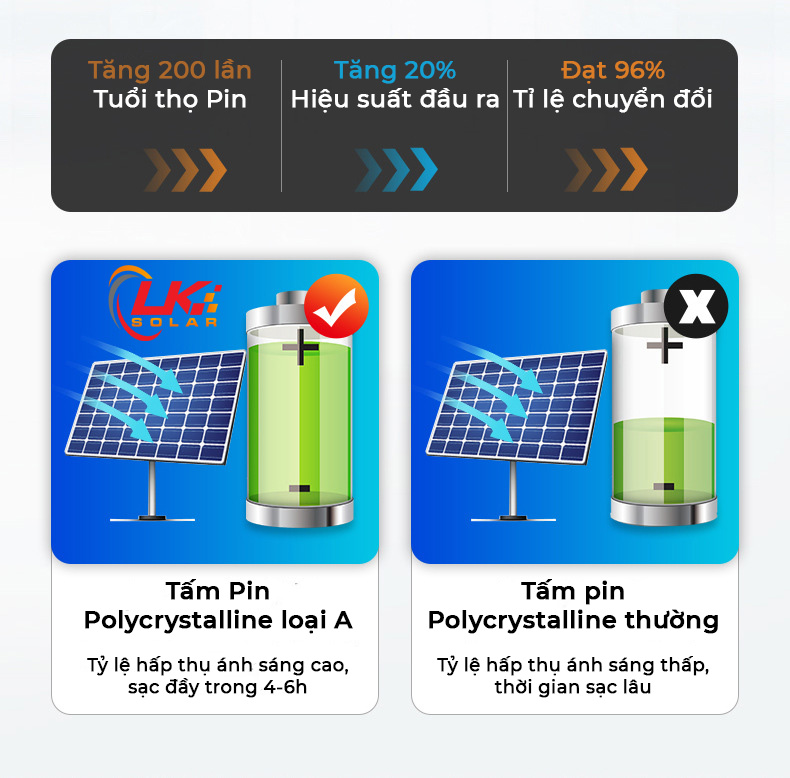 - Sản phẩm sử dụng 100% năng lượng mặt trời