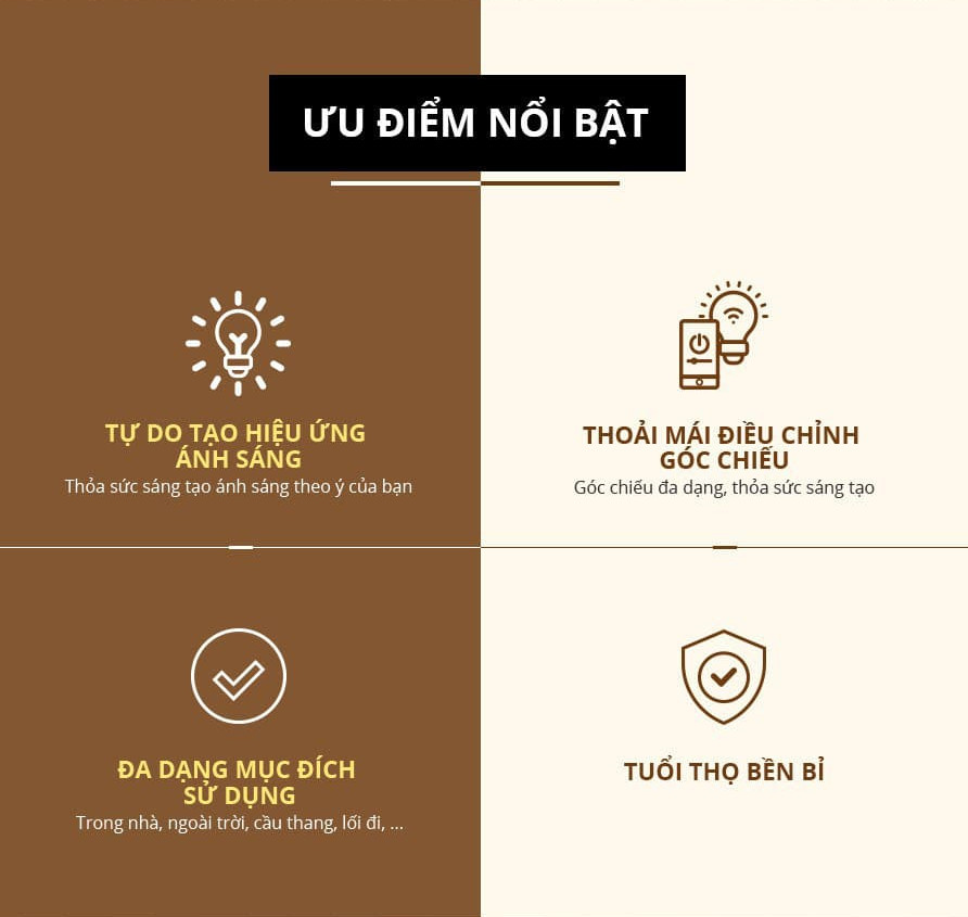 phù hợp với nhiều không gian lắp đặt, đáp ứng được nhiều tiêu chí lựa chọn hiện này của quý khách hàng. Đèn đạt tính thẩm mỹ cao, thời gian chiếu sáng dài, công suất