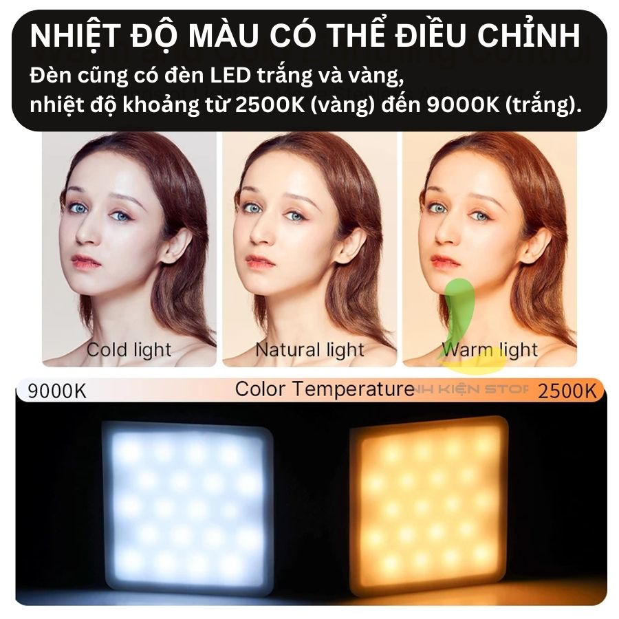- Hạt LED 3 màu chuyên nghiệp, tăng góc chiếu sáng cho màu sắc, ánh sáng nổi bật. Đặc biệt, Nhiệt độ màu có thể điều chỉnh: Đèn cũng có đèn LED trắng và vàng, cho phép bạn đặt nhiệt độ ở bất kỳ đâu trong khoảng từ 2500K (vàng) đến 9000K (trắng).