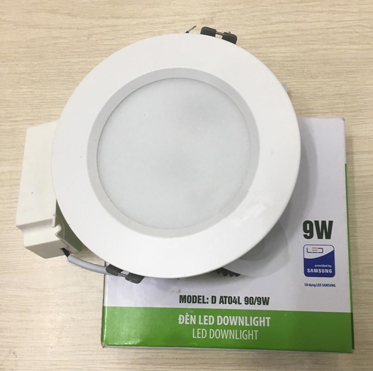 Đèn LED âm trần Downlight 90/9W Model: AT04 90/9W Công suất: 9W Tuổi thọ: 20.000 giờ Điện áp hoạt động: (150 ÷ 250)V Quang thông: 650lm/630lm Nhiệt độ màu: 6500K/3000K Kích thước (ØxH): (118x40)mm ĐK lỗ khoét trần: 90mm