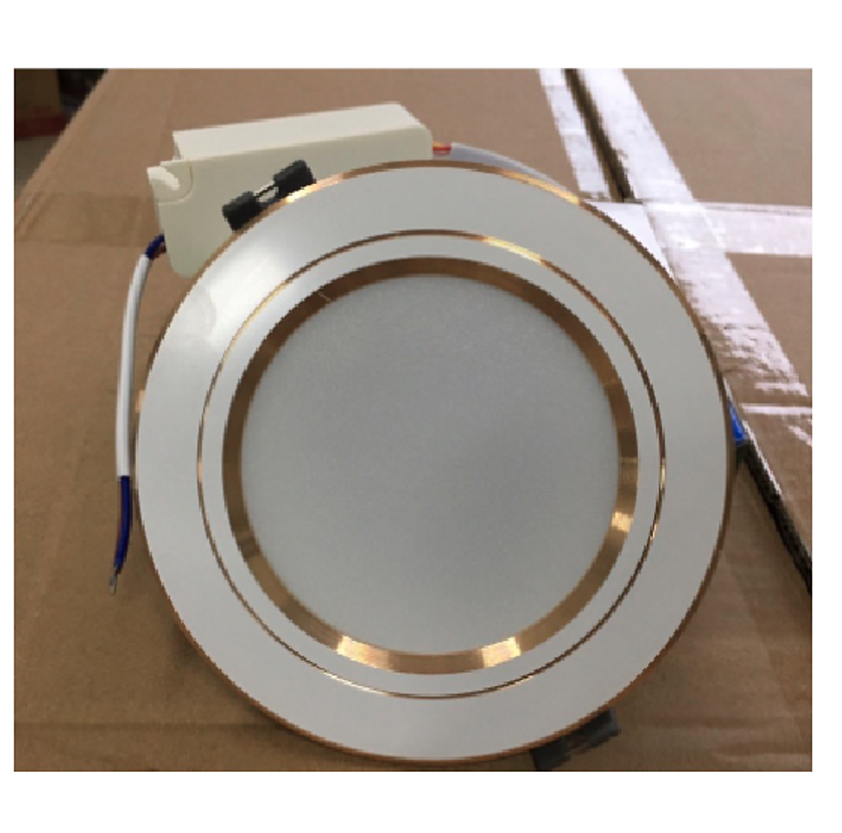 Đèn LED Âm trần Downlight 110/9W Viền Vàng Model: AT10 110/9W (G) Công suất: 9W Điện áp: 220V/50-60Hz Quang thông: 900lm Nhiệt độ màu: 6500K/3000K Kích thước (ØxH): (138x36)mm ĐK lỗ khoét trần: 110mm Sử
