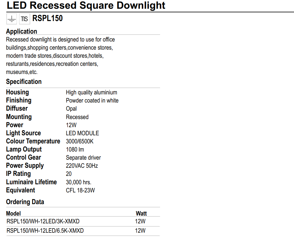 ✨ĐÈN LED ÂM TRẦN VUÔNG LUMAX#RSPL150/W-12W, XX THÁI LAN, 30.000 GIỜ
