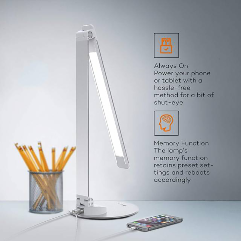 Đèn bàn sử dụng bảng điều khiển cảm ứng. Tích hợp cổng sạc USB Ismart USB giúp bạn sạc các thiết bị điện thoại, máy tính bảng dễ dàng.
