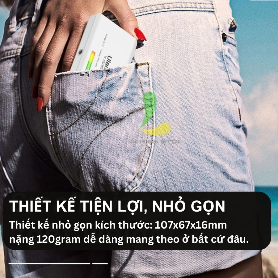 - Ulanzi VL120 RGB là phiên bản nâng cấp với kích thước nhỏ gọn, màu sắc nổi bật có thể tùy chỉnh. Thiết kế nhỏ gọn, thông minh kích thước chỉ 107x67x16mm và nặng 120 gram giúp bạn dễ dàng mang theo ở bất cứ đâu.