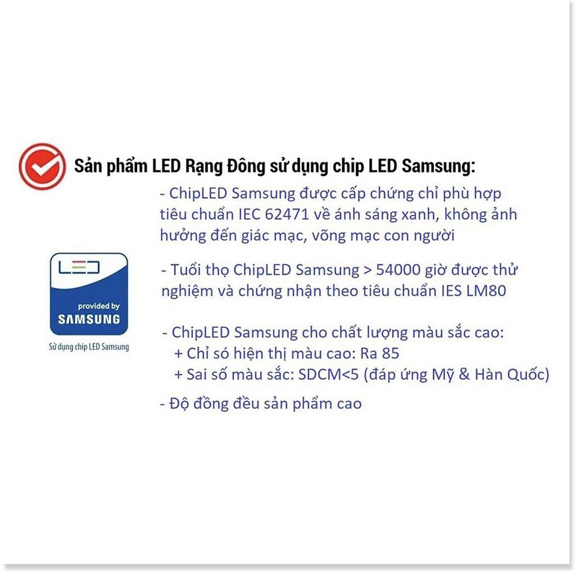 Shop thương hiệu Rạng Đông uy tín, tin cậy Dải điện áp hoạt động: (150 - 220VAC)/50Hz Quang thông: Sáng trắng 1020lm /Sáng vàng 880lm/ Sáng trung tính 930lm Nhiệt độ màu: 6500K/4000K/3000K Kích thước