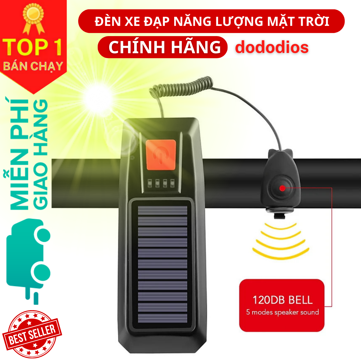 Đèn LED Xe Đạp Năng Lượng Mặt Trời Kèm Còi, Đèn Xe đạp Sạc bằng Năng Lượng Mặt Trời - USB Đèn Xe Đạp có Chuông Còi, Đèn Pin Xe Đạp chống nước có 3 chế độ sáng, sạc lại qua cổng USB, Chuông còi kêu to Phù Hợp Với Xe Đạp Leo Núi - Hàng Chính Hãng dododios GIỚI THIỆU SẢN PHẨM Đèn LED Xe Đạp Năng Lượng Mặt Trời Kèm Còi, Hàng Nhập Khẩu