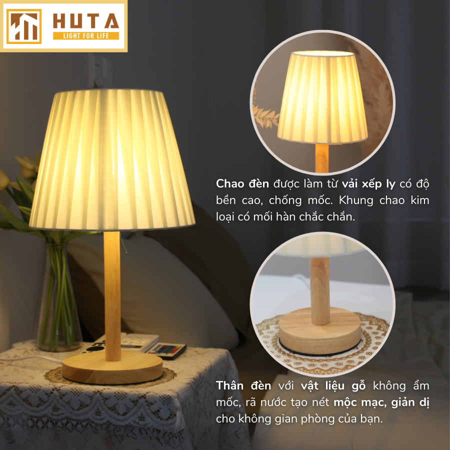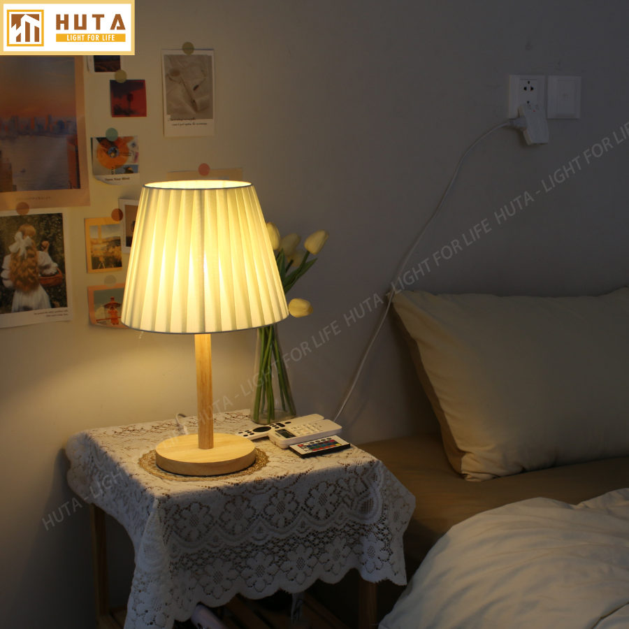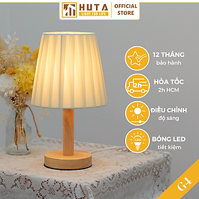 ✨Đèn Ngủ Để Bàn HUTA G4 Gỗ Chao Xếp Ly Vintage Dễ Thương, Decor Trang Trí Phòng Ngủ, Đọc Sách Đầu Giường, Điều Chỉnh Độ sáng, Đèn Vàng Bóng LED Tiết Kiệm Điện