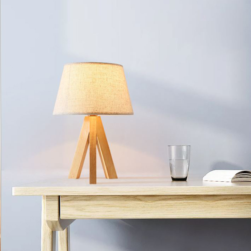 Chất liệu : Thân đèn gỗ, chao vải kẻ chỉ Bóng đèn : Đui E27 Công suất : 3W Màu ánh sáng : Ánh sáng vàng Đèn bàn để trang trí bàn nhỏ Size :
