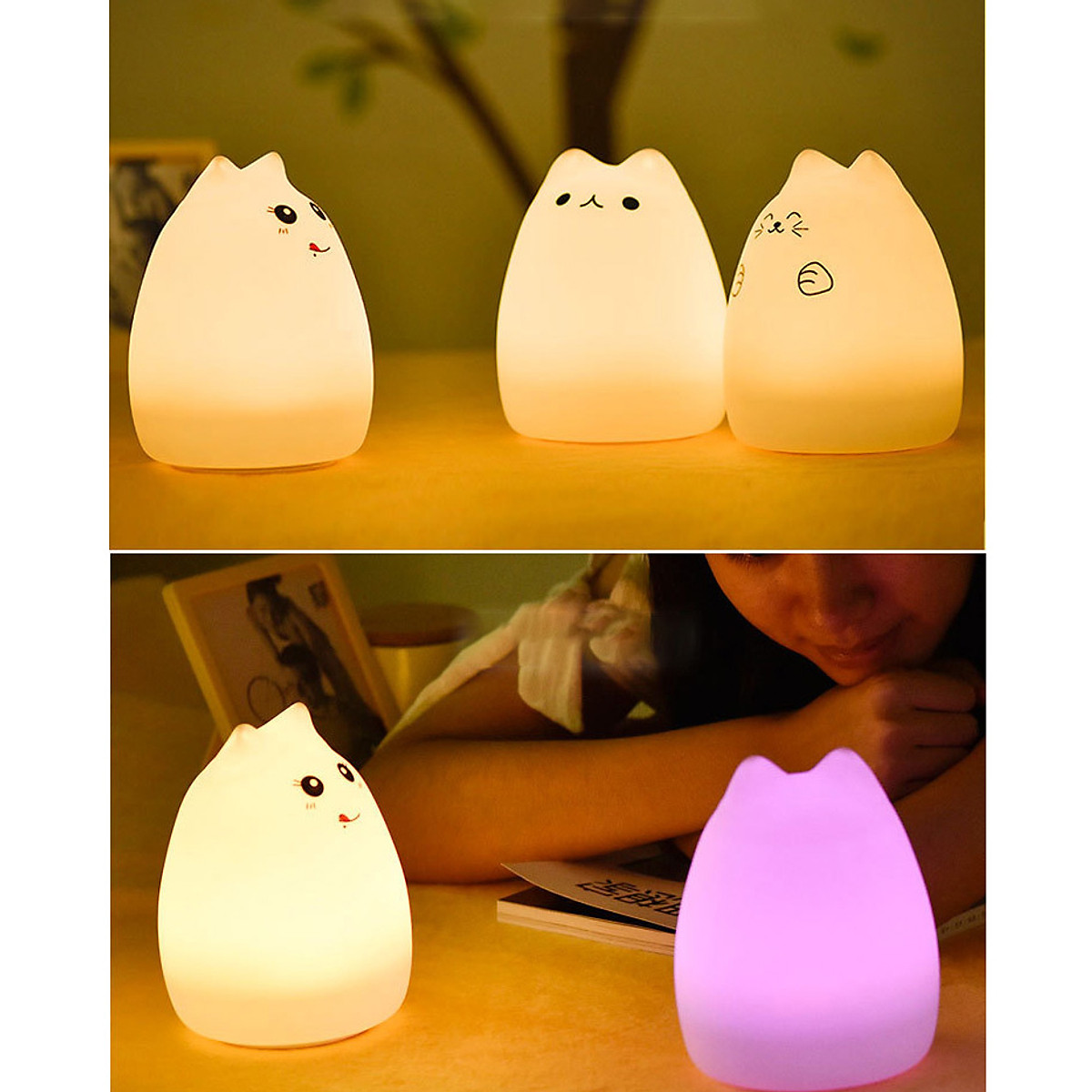 Đèn ngủ hình mèo con Siêu dễ thương có 3 mẫu (shop giao ngẫu nhiên nhé các bạn) Trắng trẻo, mềm mịn, chỉ cần chạm nhẹ là nghe lời, đổi 7 màu các thứ lun!
