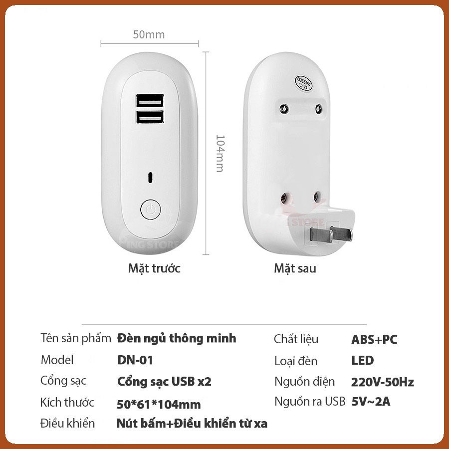 - Loại chân cắm: Chân dẹt - Chất liệu: Nhựa ABS, cảm biến LED phát quang TÍNH NĂNG NỔI BẬT CỦA ĐÈN NGỦ