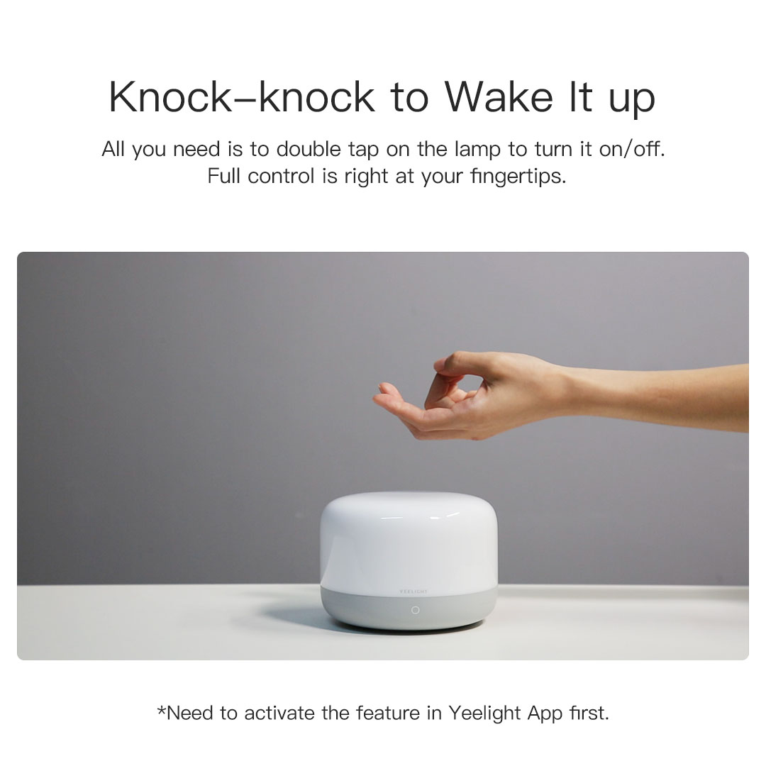 - Hẹn giờ bật/tắt đơn giản và dễ dàng Đèn ngủ thông minh nhỏ gọn Yeelight LED Bedside Lamp D2 Đèn ngủ với khả năng điều khiển bằng điện thoại với các chức năng vô cùng phong phú. Xiaomi Yeelight LED Bedside Lamp D2 là dòng đèn ngủ với thiết kế nhỏ gọn. Bạn có thể sử dụng nó như đèn ngủ, đèn bàn học. Đèn có công suất 5W với khả năng đổi màu cho phù hợp với sở thích của người dùng. Ngoài ra, đèn còn có chức năng Flowing Color – đây là chức năng chuyển màu liên lục rất thú vị. “Knock, Knock” để đánh thức đèn Yeelight D2 Đèn Yeelight Bedside Lamp D2 có thể bật/tắt bằng điện thoại, nút nguồn trên than đèn. VÀ bạn còn có thể gõ 2 lần trên mặt đèn để bật đèn. Rất tiện lợi khi bạn không có điện thoại ngay gần đó hoặc cần làm việc gấp. Thân đèn có thanh điều khiển thủ công bằng cảm ứng mà bạn có thể thao tác một cách đơn giản và dễ dàng.