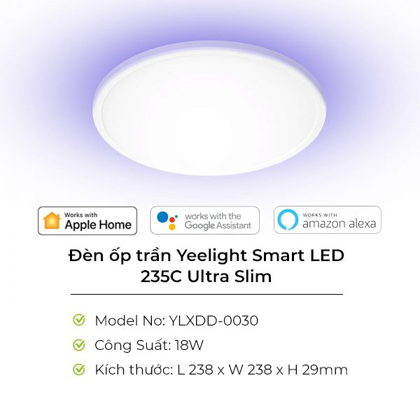 - Hẹn giờ, lên lịch hoạt động tự động cả tuần cho đèn giúp tiết kiệm điện Đèn cấu tạo khép kín, chống bụi bẩn và côn trùng Đèn ốp trần Yeelight Smart LED Ultra Slim bản nâng cấp này chuẩn chống bụi IP50. Với trang bị này bạn có thể an tâm hơn về các vấn đề liên quan đến bụi và côn trùng, ảnh hưởng đến hoạt động của thiết bị. Về cơ chế điều khiển, là một thiết bị thông minh đến từ Yeelight vì thế, đèn được trang bị cùng lúc cả kết nối WIFI và Bluetooth. Giúp cho việc điều khiển, bật tắt đèn diễn ra một cách đơn giản và dễ dàng trong quá trình sử dụng. Người dùng có thể lựa chọn nhiều hình thức điều khiển khác nhau, từ việc Google Assistant hay Yeelight APP trực tiếp ngay trên điện thoại, đến sử dụng BLE Remote/ Công tắc (mua rời).