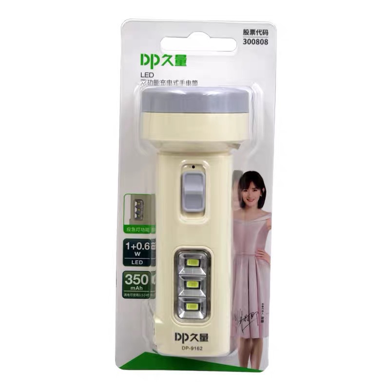 - Đèn có 2 chức năng : cầm tay và để bàn -Xuất xứ : Trung Quốc -Kích thước : 5 x 5 x 12cm -Nguồn điện : 220 - 240V -Pin : 350mAh -Công suất : DP- 9162: 1W + 0.6W -Thời gian sạc 7 - 9h -Thời gian sử dụng: 2 - 3.5h (tùy vào chế độ sáng tỏ hay sáng mờ) -Đèn nhỏ gọn tiện lợi có thể đem đi du lịch t hiết kế thân nhựa cao cấp -Đèn pin mini cầm tay có thể sạc lại , dùng cho gia đình, cắm trại ngoài trời, đèn LED khẩn cấp, ... -Tính năng : -Chiếu xa : Với 1 bóng đèn led phía trước cùng lớp phản chiếu ánh sáng thông minh cho ánh sáng mạnh với khả năng chiếu xa ấn tượng. -Chiếu rộng : Với bóng led trên thân đèn sử dụng thay thế các đèn bàn thông thường với vùng chiếu sáng rộng giúp bạn duy trì các hoạt động bình thường khi không có điện. -Tính năng bổ sung : dùng thay thế đèn đọc sách, đèn để bàn. -Lưu ý khi sử dụng :