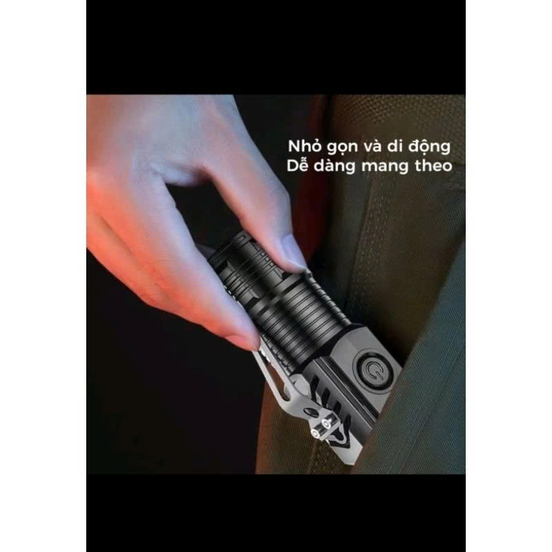 Đèn pin cầm tay mini siêu sáng chiếu xa, pin trâu, 5 chế độ sáng, đèn pin mini cầm tay có móc gài tiện dụng