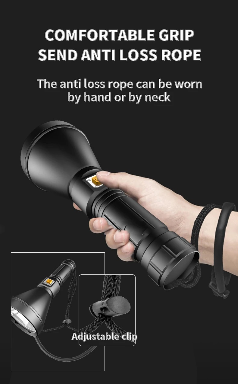Đèn pin LED đa chức năng có thể sạc lại và nhỏ gọn để sử dụng tại nhà. Pin lithium có thể sạc lại dung lượng lớn tích hợp, nhiều phương pháp sạc USB, phạm