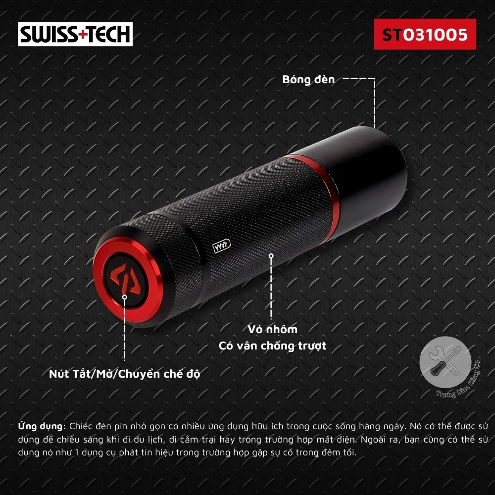 Mua tại Tiktok- SWISS+TECH ST031005 - Ánh sáng rọi sáng mọi góc tối, biến đêm đen thành ngày sáng! Nhỏ gọn, bền bỉ, và siêu sáng, chiếc đèn pin này là người bạn đồng hành không thể thiếu cho những chuyến phiêu lưu của bạn Đặc Điểm Nổi Bật: