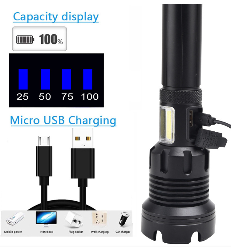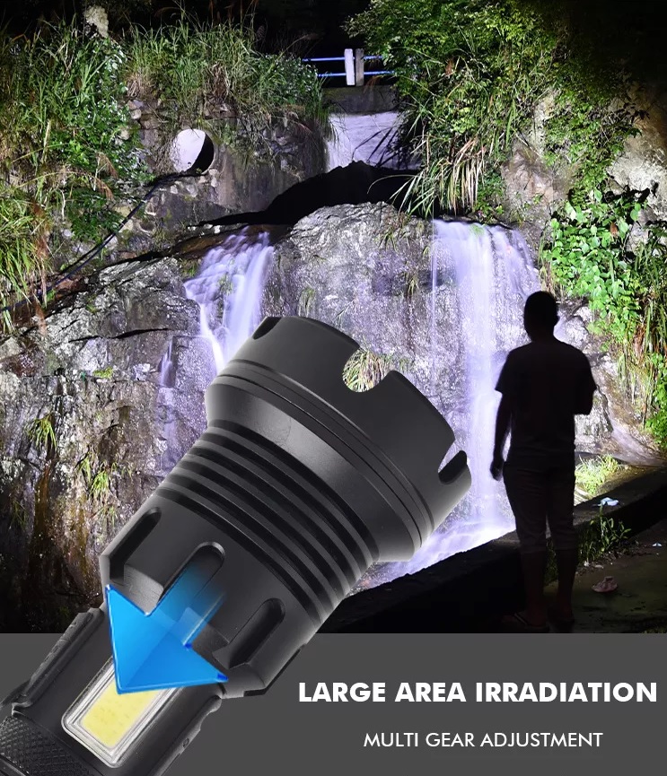 Đèn pin LED đa chức năng có thể sạc lại và nhỏ gọn để sử dụng tại nhà. Pin lithium có thể sạc lại dung lượng lớn tích hợp, nhiều phương pháp sạc USB, phạm