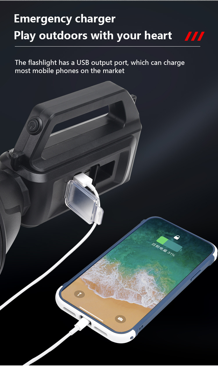 Đèn pin LED đa chức năng có thể sạc lại và nhỏ gọn để sử dụng tại nhà. Pin lithium có thể sạc lại dung lượng lớn tích hợp, nhiều phương pháp sạc USB, phạm