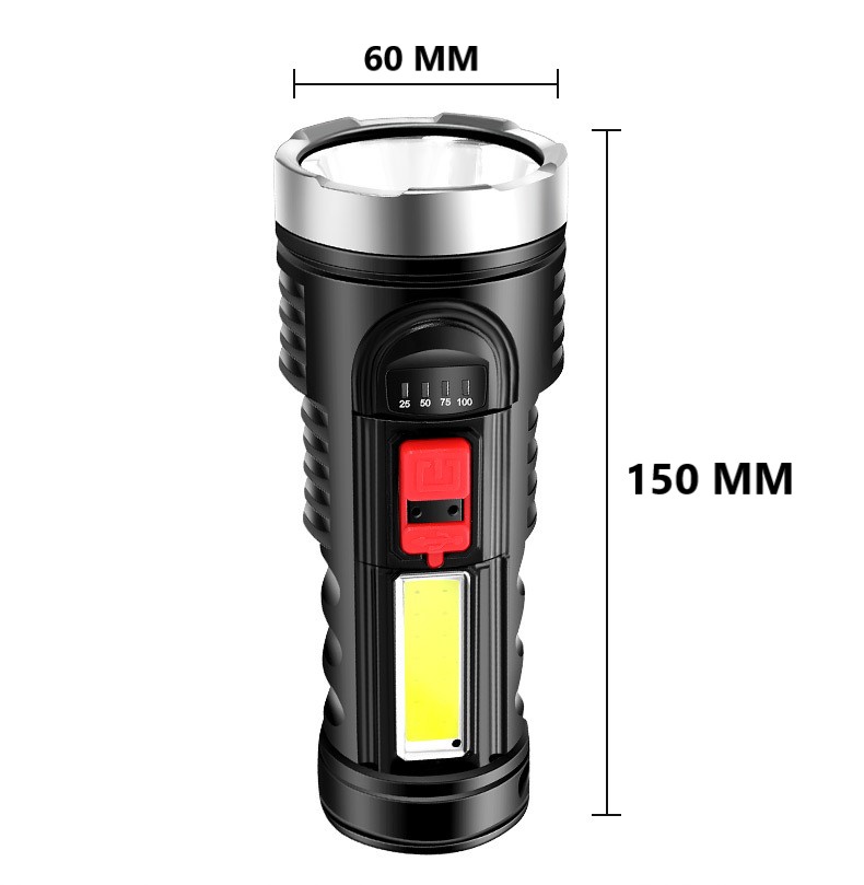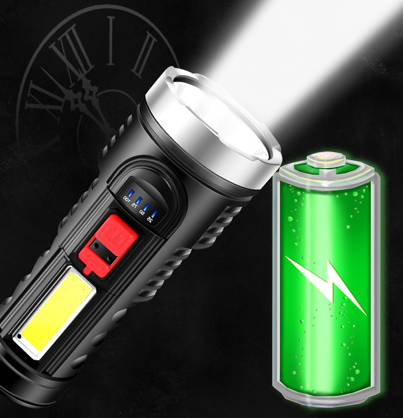 Đèn pin LED đa chức năng có thể sạc lại và nhỏ gọn để sử dụng tại nhà. Pin lithium có thể sạc lại dung lượng lớn tích hợp, nhiều phương pháp sạc USB, phạm