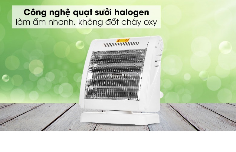 - Tự động ngắt điện khi quạt bị nghiêng hay đổ Đèn Sưởi Điện 2 Bóng Halogen 800W Xoay 90 Độ - Hàng Chính Hãng là một trong những thiết bị sưởi ấm không thể thiếu tại gia đình trong mùa đông. Sản phẩm sử dụng đèn Halogen, tỏa nhiệt đều, làm ấm nhanh, không gây khó thở và khô da, đảm bảo an toàn cho người sử dụng. Kiểu dáng sang trọng, hiện đại Đèn Sưởi Điện 2 Bóng Halogen 800W Xoay 90 Độ - Hàng Chính Hãng có thiết kế sang trọng hơn, kiểu dáng hiện đại và bắt mắt, nhỏ gọn tiết kiệm diện tích và phù hợp mọi không gian như phòng khách, phòng ngủ, Điều khiển dễ dàng bằng nút xoay Đèn Sưởi Điện 2 Bóng Halogen 800W Xoay 90 Độ - Hàng Chính Hãng có 3 mức công suất 400W, 800W điều chỉnh bằng núm vặn linh hoạt theo 2 chiều giúp bạn dễ dàng lựa chọn được mức nhiệt phù hợp với môi trường và nhu cầu sử dụng. Chắc chắn, bền đẹp, an toàn Đèn Sưởi Điện 2 Bóng Halogen 800W Xoay 90 Độ - Hàng Chính Hãng có chân đế vững chãi, lưới bảo vệ, tránh gây bỏng cho người dùng. Đặc biệt, lồng và vỏ nhựa phía sau chống cháy tuyệt đối, lưới tản nhiệt giúp sản phẩm không bị hư hỏng do quá nóng. TỎA NHIỆT ĐỀU, KHÔNG GÂY KHÔ DA Làm ấm cực nhanh, không gây khô da Đèn Sưởi Điện 2 Bóng Halogen 800W Xoay 90 Độ - Hàng Chính Hãng sử dụng đèn halogen, làm ấm cực nhanh, độ bền vượt trội, chống chói mắt hiệu quả và không đốt cháy oxy nên không gây khó thở hay khô da khi dùng. Quay đảo chiều, tỏa nhiệt đều khắp phòng Sản phẩm có khả năng quay đảo chiều liên tục, giúp tỏa nhiệt đều khắp phòng, rất thích hợp khi sử dụng tại không gian rộng như phòng khách hoặc phòng có nhiều người. An toàn với người sử dụng Đèn Sưởi Điện 2 Bóng Halogen 800W Xoay 90 Độ - Hàng Chính Hãng có chế độ tự động ngắt điện khi bị nghiêng đổ và hoạt động trở lại bình thường trở lại trạng thái an toàn. Thông số kỹ thuật