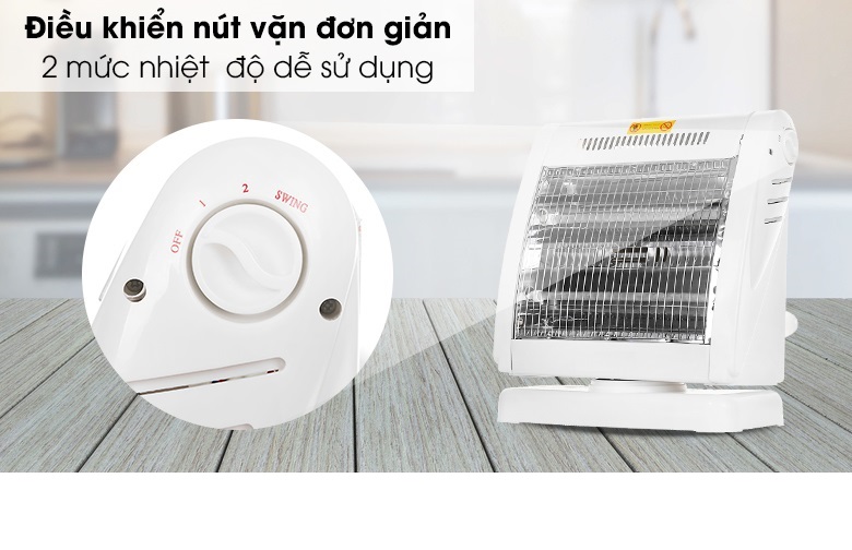 - Tự động ngắt điện khi quạt bị nghiêng hay đổ Đèn Sưởi Điện Halogen FJ-SNV1 - Hàng Chính Hãnglà một trong những thiết bị sưởi ấm không thể thiếu tại gia đình trong mùa đông. Sản phẩm sử dụng đèn Halogen, tỏa nhiệt đều, làm ấm nhanh, không gây khó thở và khô da, đảm bảo an toàn cho người sử dụng. Kiểu dáng sang trọng, hiện đại Đèn Sưởi Điện Halogen FJ-SNV1 - Hàng Chính Hãng có thiết kế sang trọng hơn, kiểu dáng hiện đại và bắt mắt, nhỏ gọn tiết kiệm diện tích và phù hợp mọi không gian như phòng khách, phòng ngủ, Điều khiển dễ dàng bằng nút xoay Đèn Sưởi Điện Halogen FJ-SNV1 - Hàng Chính Hãng có 2 mức công suất 400W, 800W điều chỉnh bằng núm vặn linh hoạt theo 2 chiều giúp bạn dễ dàng lựa chọn được mức nhiệt phù hợp với môi trường và nhu cầu sử dụng. Chắc chắn, bền đẹp, an toàn Đèn Sưởi Điện Halogen FJ-SNV1 - Hàng Chính Hãng có chân đế vững chãi, lưới bảo vệ, tránh gây bỏng cho người dùng. Đặc biệt, lồng và vỏ nhựa phía sau chống cháy tuyệt đối, lưới tản nhiệt giúp sản phẩm không bị hư hỏng do quá nóng. TỎA NHIỆT ĐỀU, KHÔNG GÂY KHÔ DA Làm ấm cực nhanh, không gây khô da Đèn Sưởi Điện Halogen FJ-SNV1 - Hàng Chính Hãng sử dụng đèn halogen, làm ấm cực nhanh, độ bền vượt trội, chống chói mắt hiệu quả và không đốt cháy oxy nên không gây khó thở hay khô da khi dùng. Quay đảo chiều, tỏa nhiệt đều khắp phòng Sản phẩm có khả năng quay đảo chiều liên tục, giúp tỏa nhiệt đều khắp phòng, rất thích hợp khi sử dụng tại không gian rộng như phòng khách hoặc phòng có nhiều người. An toàn với người sử dụng Đèn Sưởi Điện Halogen FJ-SNV1 - Hàng Chính Hãng có chế độ tự động ngắt điện khi bị nghiêng đổ và hoạt động trở lại bình thường trở lại trạng thái an toàn. Thông số kỹ thuật