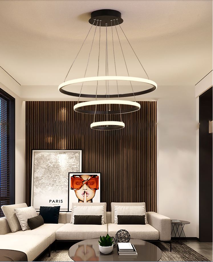 Đèn thả 3 vòng với phong cách thiết kế đơn giản nhưng sẽ giúp nổi bật không gian sống của gia đình bạn. Đèn thả 3 vòng là mẫu đèn thả được ưu chuộng nhất hiện nay, bởi giá thành hợp lý với khả năng tùy biến nhiều kiểu thả khác nhau, sẽ phù hợp với mọi không gian hiện đại.