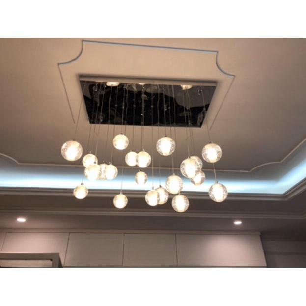 Chất liệu: mâm đèn là inox k dỉ BH 5 năm,Kết phù hợp với pha le giọt nước fi 10cm và 8cm.
