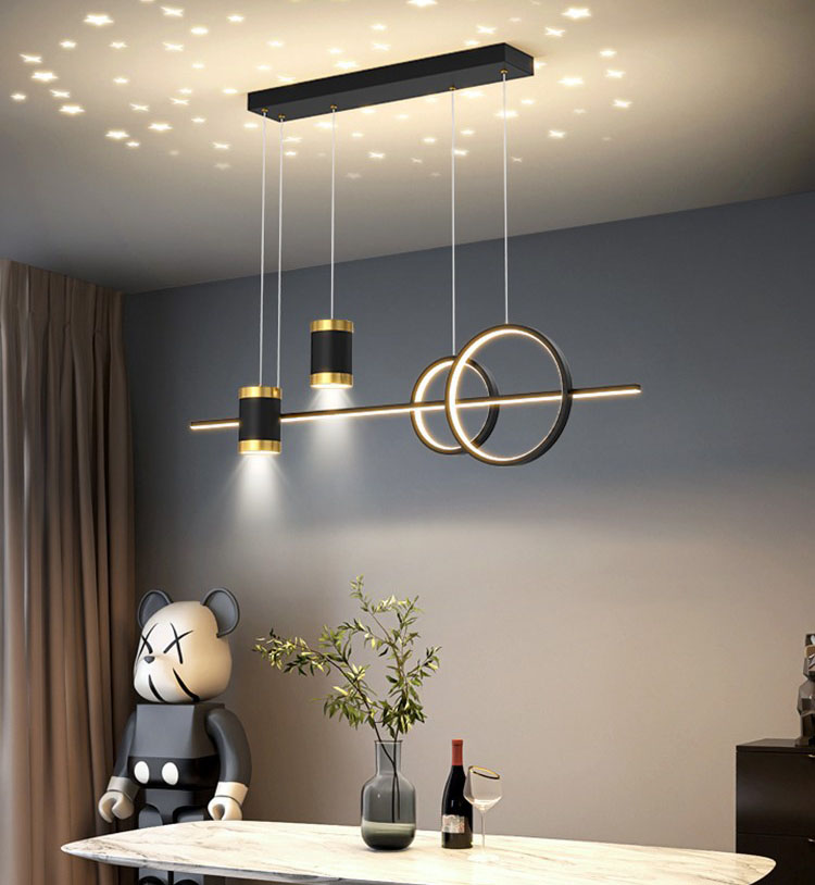 Thông qua việc trang trí nội thất của không gian có thể biết phần nào tính cách và con mắt nghệ thuật của chủ nhà. Bởi vậy những vật dụng trang trí nội thất luôn được người dùng lựa chọn cực kỳ cẩn thận. Đặc biệt là thiết bị chiếu sáng lại càng được chú trọng vì đây chính là sản phẩm cần thiết trong mọi không gian. Mỗi loại đèn lại có những ưu điểm và thiết kế khác nhau đem đến cho người dùng những cảm nhận khác biệt. Đèn thả hiện đại là một trong số các loại đèn độc đáo và mới lạ giúp không gian ngôi nhà bạn trở nên tươi mới hơn. THÔNG TIN SẢN PHẨM: Thân đèn làm bằng sắt cứng và quy trình sơn tinh tế, bền và sáng màu, chống ăn mòn, chống gỉ và chống trầy xước. Đế bắt trần chịu lực bền và chắc chắn, chống gió và chống rỉ sắt, khả năng chịu lực mạnh. Vòng kim loại dày làm bằng phần cứng chất lượng cao được sơn ở nhiệt độ cao màu sắc tươi sáng. Chụp đèn silicon có độ truyền ánh sáng cao, truyền ánh sáng đồng đều, ánh sáng dịu, dễ lau chùi. Thả rọi tích hợp chíp led không nhấp nháy tạo hiệu ứng bầu trời sao độc đáo, không khí lãng mạn, sang trọng. Kích thước sản phẩm: 100x120(cm) Ứng dụng: phòng ăn, phòng khách, khách sạn, Công nghệ chiếu sáng hiện đại của bóng đèn led giúp cho đèn bàn ăn đẹp cung cấp ánh sáng đều màu, ổn định trong khoảng diện tích từ 10-35 m2 mà không bị chập chờn, chớp nháy gây ảnh hưởng đến thị giác người nhìn. Hơn nữa, chúng còn làm nổi bật lên vẻ đẹp của các món ăn từ đó thu hút các thành viên trong gia đình quây quần lại thưởng thức. Không chỉ đóng vai trò cung cấp ánh sáng, Đèn thả trang trí còn là vật dụng làm nổi bật lên phong cách nội thất của không gian. Tại mỗi không gian, các bạn cũng nên biết cách bày trí sao cho đạt hiệu quả thẩm mỹ cao nhất. Đèn thả giúp mang lại những điều vui vẻ, hạnh phúc trong căn hộ của bạn. Chính vì thế nhiều gia đình lựa chọn lắp đèn thả trong phòng ngủ vừa tạo không gian ấm áp, lãng mạn. Vừa giúp tăng sự gắn kết trong hạnh phúc gia đình.