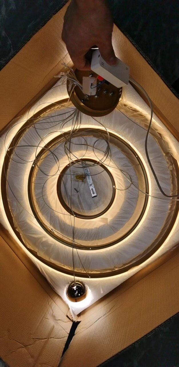Bảo Sài Gòn review bộ đèn thả 3 vòng siêu sang, siêu sáng trước khi giao khách Quận 12