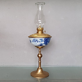 hất liệu: gốm sứ cao cấp Bát Tràng Họa tiết: Vẽ thủ công bằng tay, nghệ thuật tinh xảo Thiết kế: tinh tế, cổ truyền Loại men: Men lam cổ Đèn dầu là sản phẩm