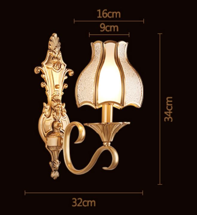 Nếu bạn đang tìm kiếm cho mình một mẫu đèn tường trang trí cao cấp, vậy thì bạn sẽ không thể nào bỏ lỡ mẫu đèn tường cổ điển trang trí nội, ngoại thất  Bảng mô tả thông tin chi tiết của sản phẩm: Chất liệu Đồng Điện áp 220V Phong cách Châu Âu Loại đèn  Đèn LED tiết kiệm năng lượng Không gian Trong và ngoài biệt thự Ban công hành lang cổng tường sân vườn đầu giường Kích thước 32*34 (cm)   Chất liệu: Chất liệu được làm từ chất liệu thủy tinh trong suốt. Với phần khung đèn được thiết kế theo phong cách hiện đại, sang trọng mang đậm dấu ấn đẳng cấp châu Âu. Đặc biệt hơn, công nghệ phun sơn ở nhiệt độ cao kết hợp với sơn thủ công cho lớp trang trí bên ngoài mọt vỏ bọc hoàn hảo. Nhìn ở góc độ gần, bạn sẽ cảm nhận sự trơn láng, không một chút khuyết điểm của sản phẩm. Lớp thủy tinh bảo vệ cho bóng đèn compact bên trong, đồng thời mang đến ánh sáng hoàn hảo cho không gian mà nó chiếu sáng. Thân đèn bằng đồng, chao bằng thủy tinh cao cấp Bóng đui xoáy thông dụng E27 Ứng Dụng: Đèn trang trí phòng khách, đèn trang trí sảnh , đèn trang trí cột , đèn trang trí hành lang,. . Đèn đã bao gồm bóng LED chuyên dụng Thiết kế đèn tường thủy tinh nhìn tựa như một chiếc chuông, bao phủ và bảo vệ bóng đèn, thay bóng dễ dàng, cũng rất tiện lợi khi vệ sinh và lau chùi.