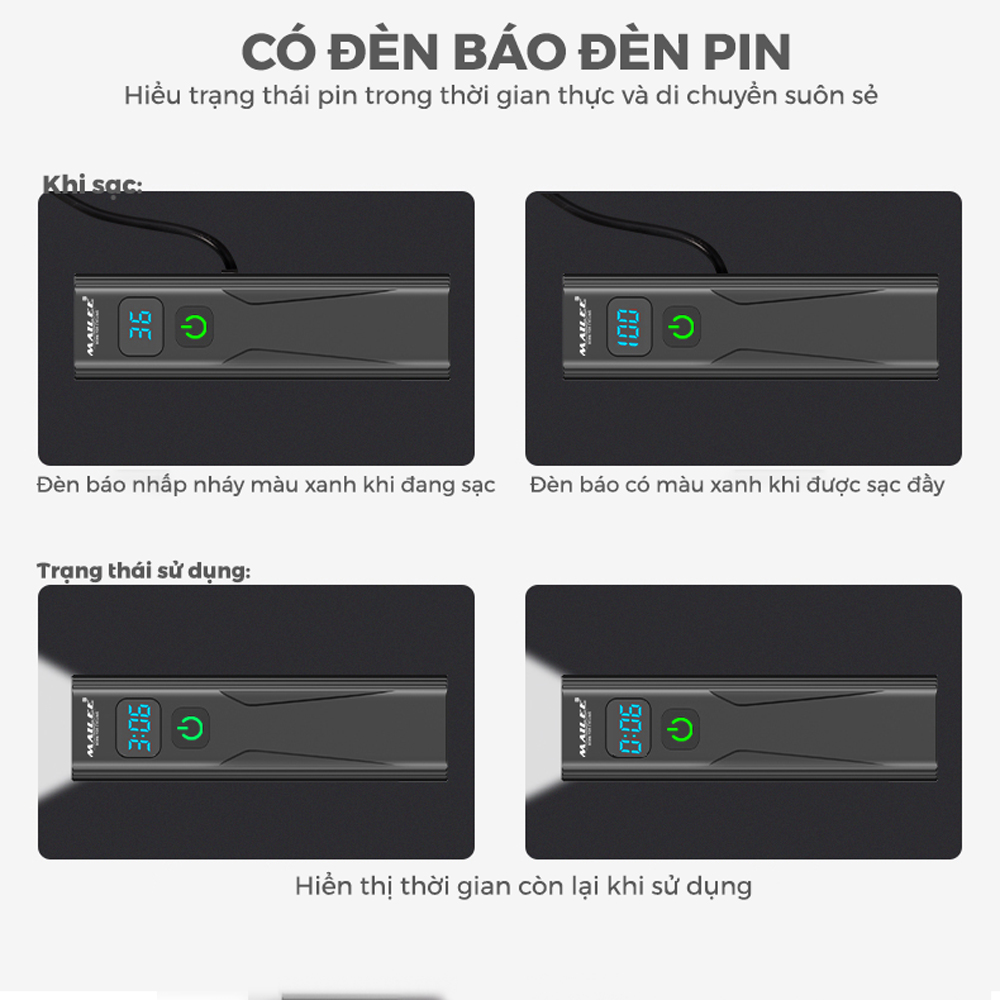 Chỉ báo sạc: Khi sạc LED nhấp nháy màu xanh, khi sạc đầy là màu xanh