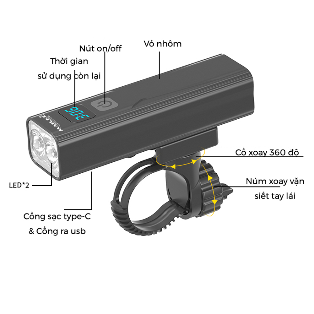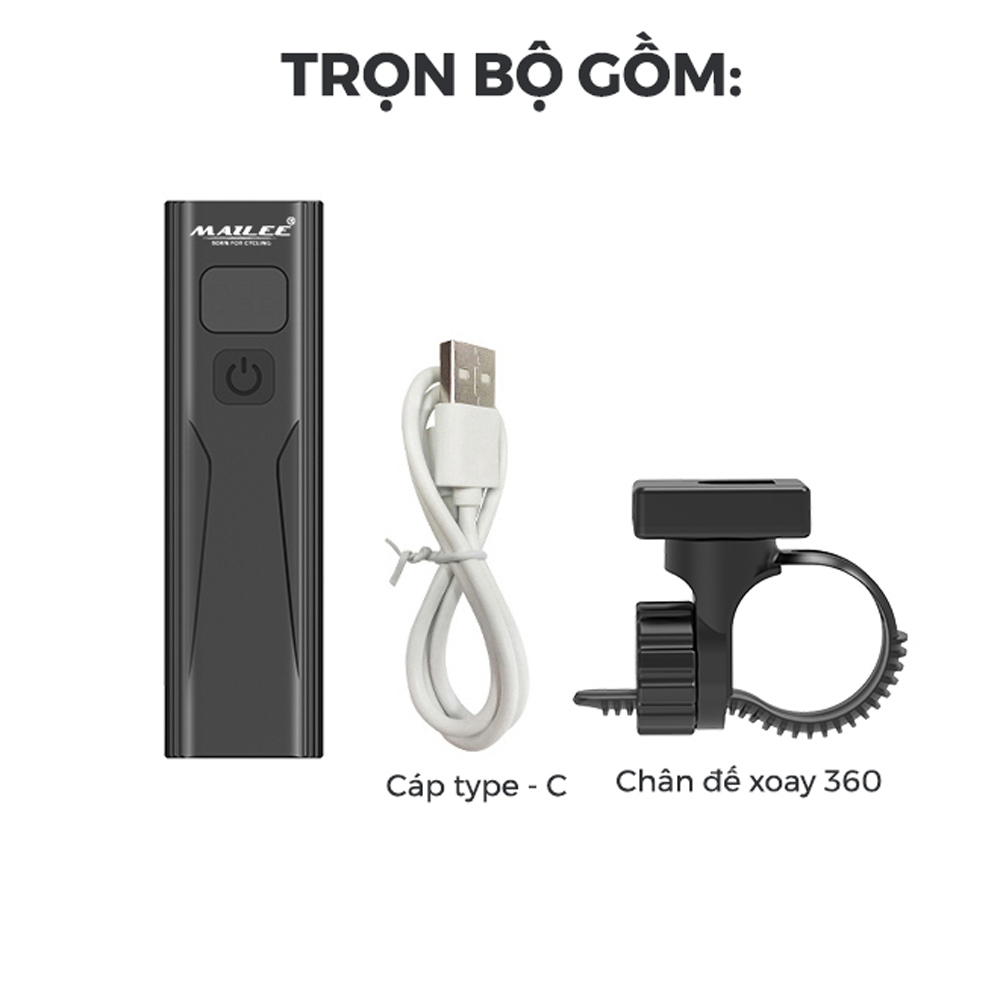 Đèn Xe Đạp BC-10 dung lượng 2600mAh 2 bóng, có hiển thị thời gian còn lại sử dụng, sạc Type-C, Có Hỗ trợ Sạc Khẩn Cấp - Mai Lee Mẫu sản phẩm: Đèn trước xe