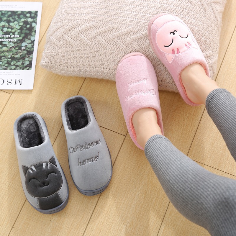 Dép Bông Đi Trong Nhà Mùa Thu Đông Đế Dày Chống Trơn Trượt Hình Mèo Dễ Thương