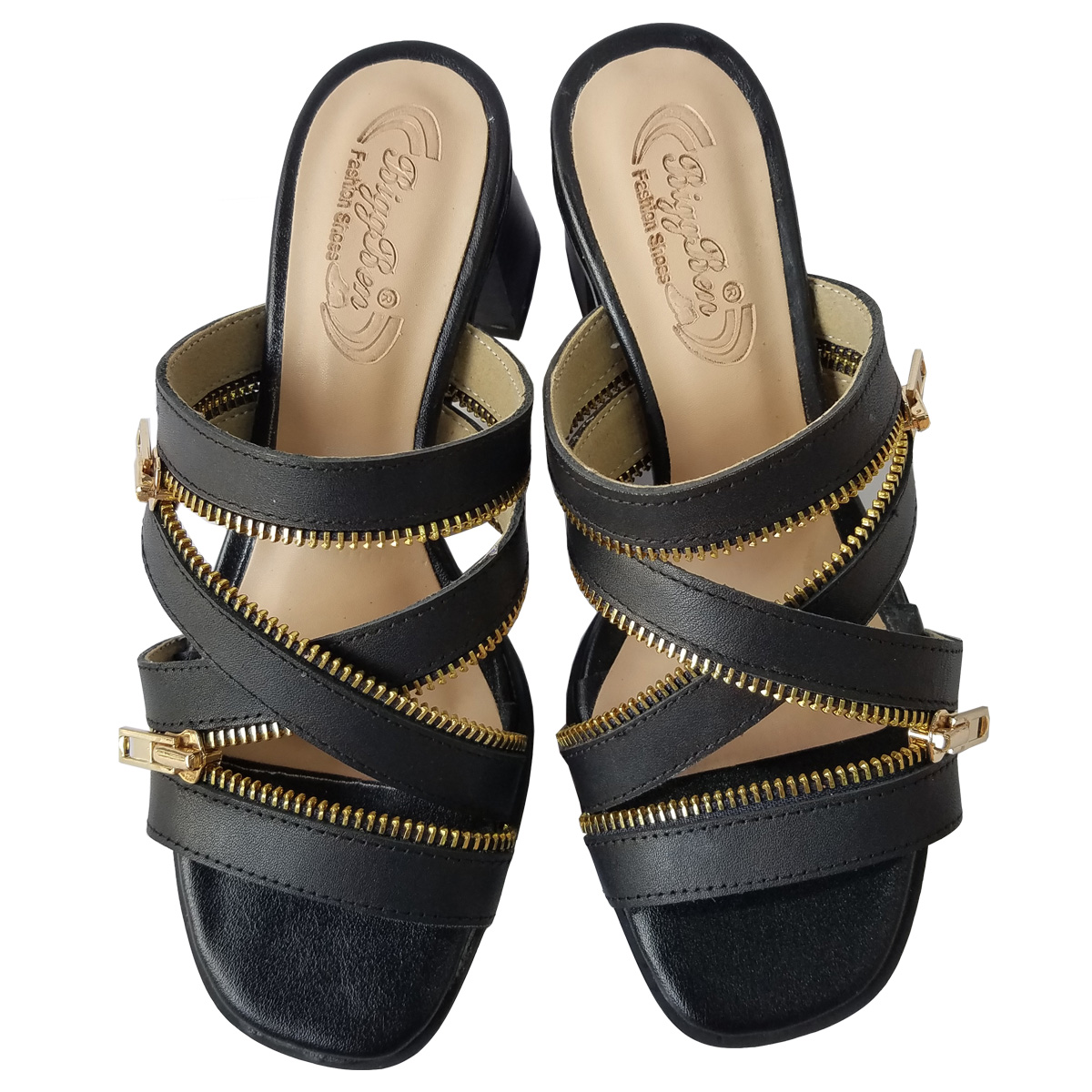 - Dép nữ cao gót quai ngang một bản TRường Hải màu đen gót vuông 8cm da mềm DN139 thiết kế với kiểu dáng ôm chân, thon gọn, thoải mái di chuyển mà không lo