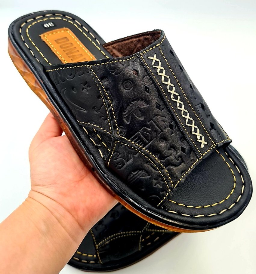 Dép Da Nam - Lịch Lãm & Thoải Mái Mỗi Ngày - Chất liệu cao cấp: Sử dụng da tổng hợp chất lượng, mềm mại, bền bỉ theo thời gian, mang lại cảm giác êm ái và thoáng khí cho bàn chân. - Thiết kế sang trọng: Tông màu đen lịch lãm, kết hợp với đường chỉ may tinh tế và logo kim loại nổi bật – tôn lên vẻ nam tính, trưởng thành. - Đế chống trượt: Đế EVA siêu nhẹ, độ đàn hồi tốt, kết hợp vân đế tăng độ ma sát – an toàn khi di chuyển trên nhiều bề mặt. - Form ôm chân: Thiết kế bản quai ngang rộng, ôm gọn bàn chân nhưng không gây bí bách, dễ xỏ vào – thích hợp cho người trung niên và người lớn tuổi. - Ứng dụng đa năng: Phù hợp sử dụng trong nhà, đi dạo phố, đến văn phòng hoặc các dịp gặp gỡ thân mật. Lựa chọn tuyệt vời cho quý ông yêu thích sự thoải mái, đơn giản nhưng vẫn giữ được nét tinh tế trong từng bước chân.